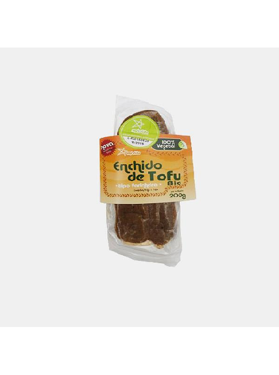 Ingredientes: Tofu* (38%) [feijão de SOJA*, água, nigari- cloreto de magnésio natural], farinha de CENTEIO*, farinha de TRIGO*, pimentão*, farinha de milho*, azeite virgem*, alho*, especiarias* (pimenta*, cominhos* e cravinho*) e sal marinho. Ingredientes envoltos em película não comestível. *de Produção Biológica, Certiplanet PT-BIO-04, Agricultura UE/Não UE. Delicioso preparado vegetal à base de soja com farinhas e temperos típicos da gastronomia portuguesa. 100% vegetal.