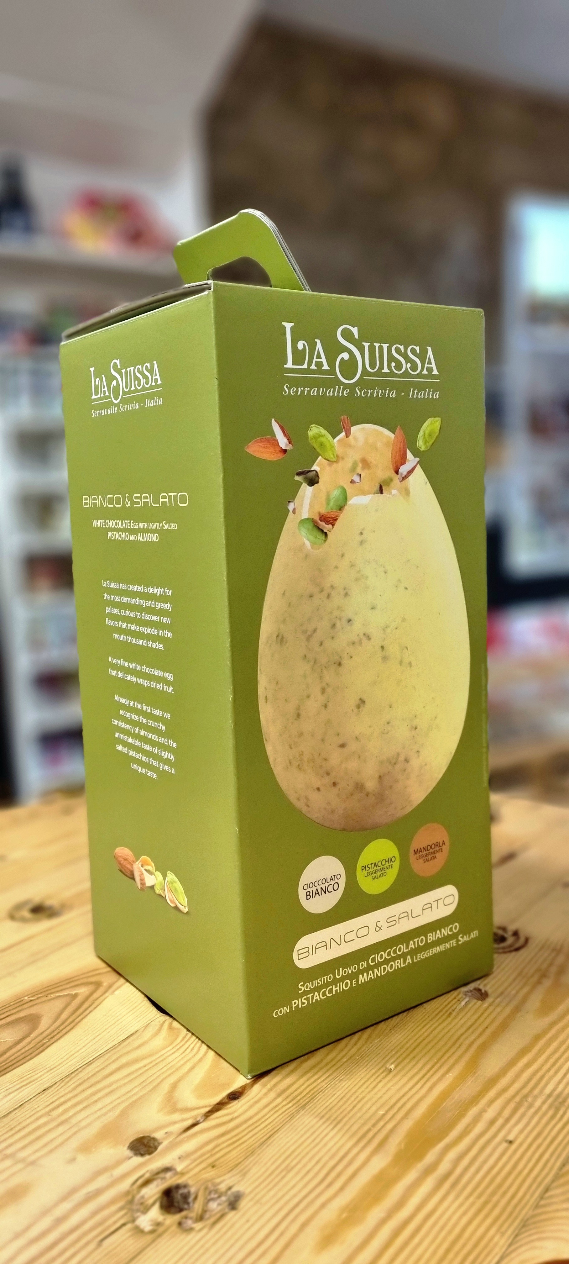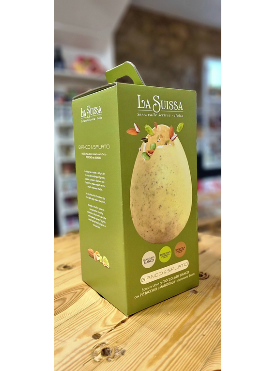 O Bianco & Salato La Suissa é perfeito para quem procura uma alternativa elegante aos ovos de chocolate tradicionais, com um toque surpreendente e memorável.