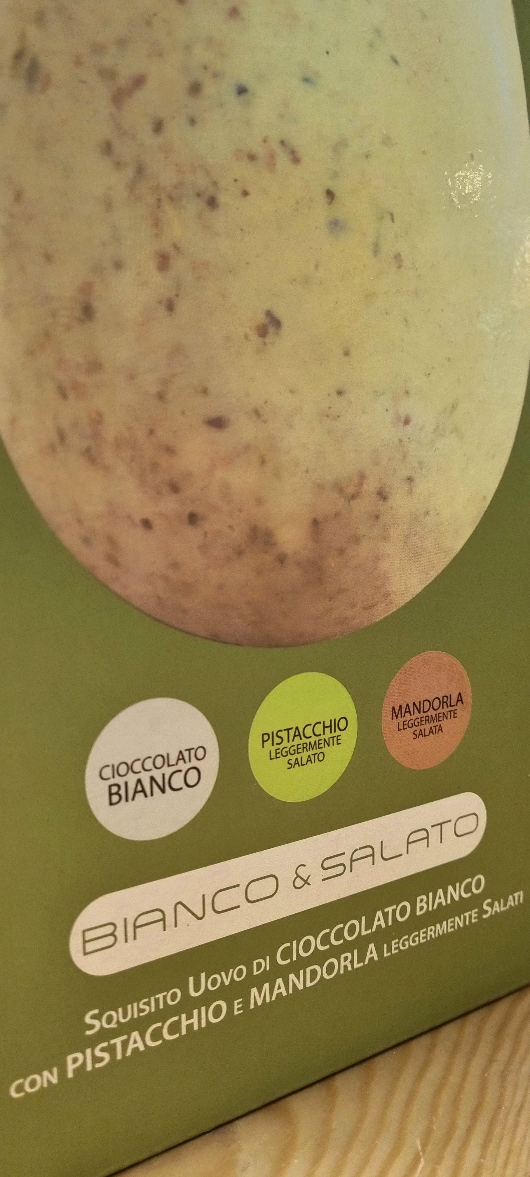 🔸 Tipo de chocolate: Chocolate branco com pistácio e amêndoa salgada