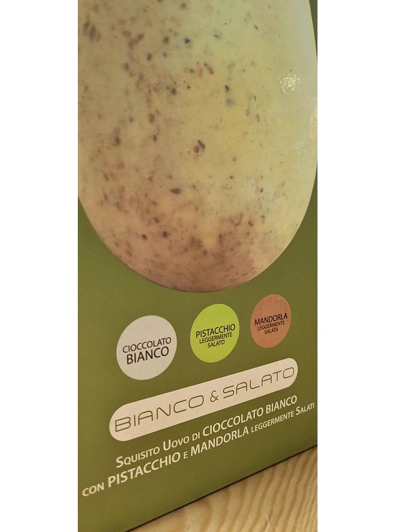 Surpreende nesta Páscoa com o irresistível Ovo de Páscoa Bianco & Salato La Suissa 450g, uma combinação refinada de chocolate branco cremoso, pedaços de pistácio e amêndoas ligeiramente salgadas. Esta fusão de sabores e texturas cria uma experiência única, onde o doce do chocolate contrasta harmoniosamente com o toque subtil de sal e a crocância dos frutos secos.