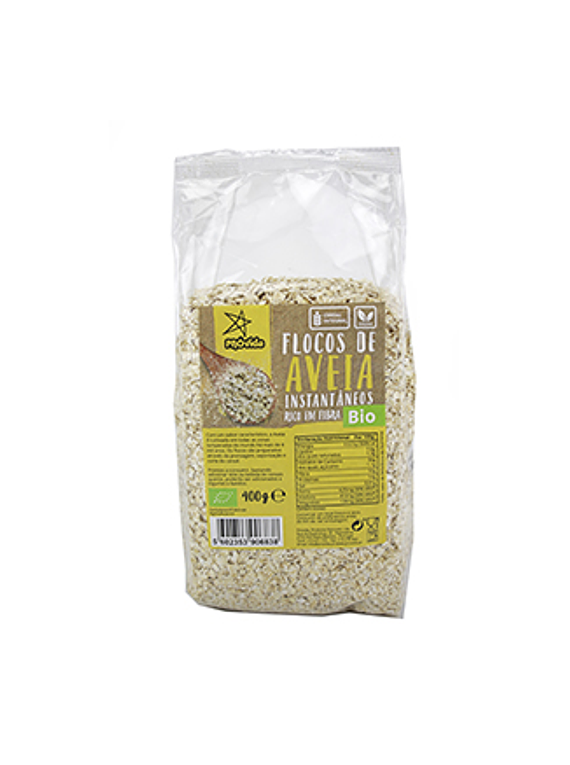 Flocos de Aveia Integral Instantâneos Biológicos 400g Próvida. Ingredientes: AVEIA de produção biológica. PT-BIO-04 UE (Finlândia). Especialmente indicados para papas. Obtidos a partir da prensagem, vaporização e corte de aveia. Alto teor em fibra. Fonte de proteína e rico em magnésio.